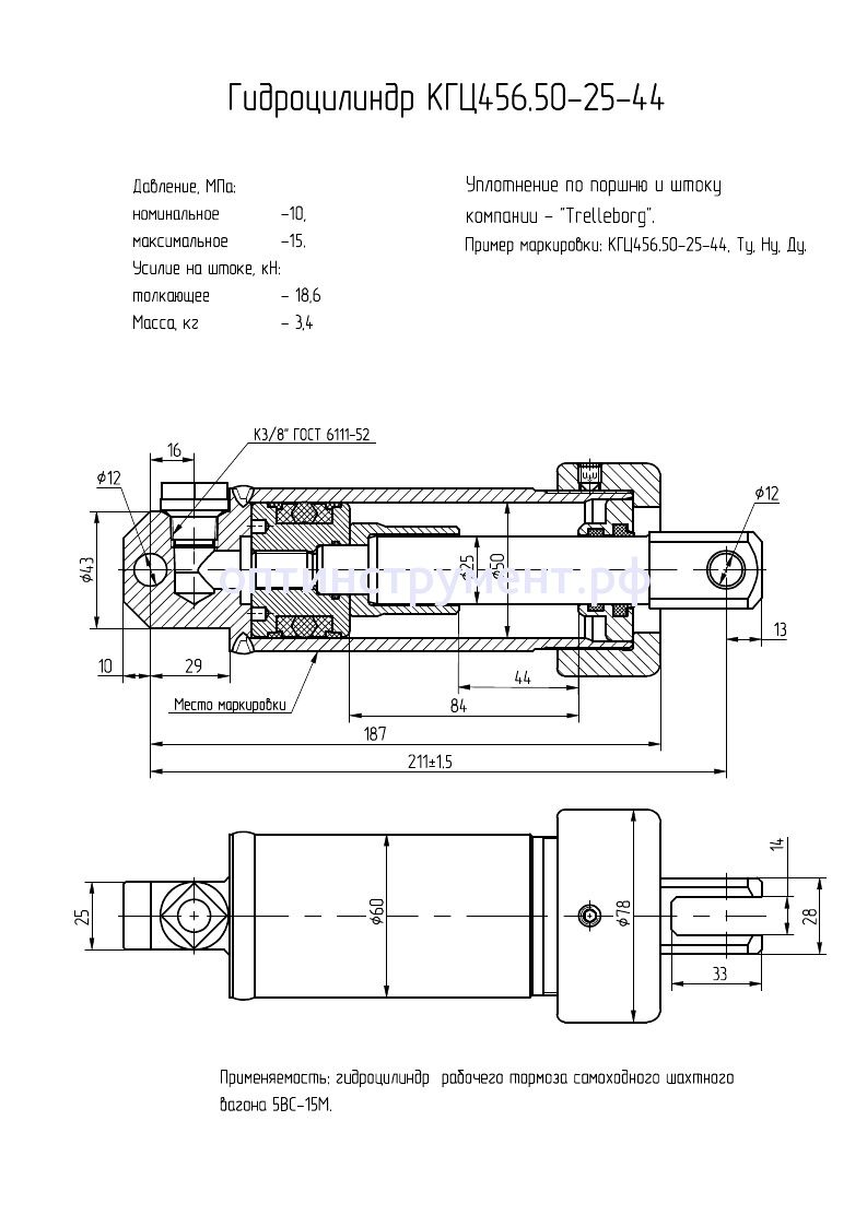 Гидроцилиндр для рабочего тормоза самоходного шахтного КГЦ 456.50-25-44 в продаже по цене 5 295 руб. в Интернет-магазине Проф-инструмент с доставкой в Уфе. Звоните по телефону +8 (800) 302-10-51.