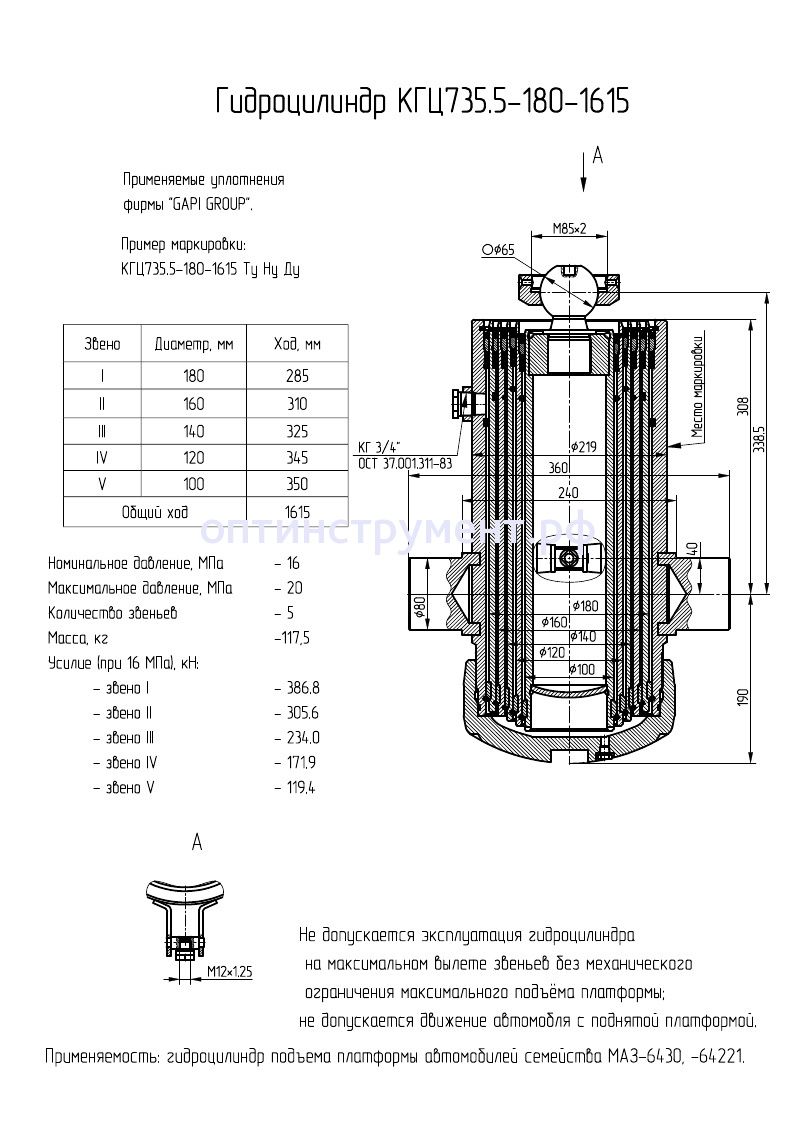 Гидроцилиндр КГЦ 735.5-180-1615 в продаже по цене 86 790 руб. в Интернет-магазине Проф-инструмент с доставкой в Уфе. Звоните по телефону +8 (800) 302-10-51.