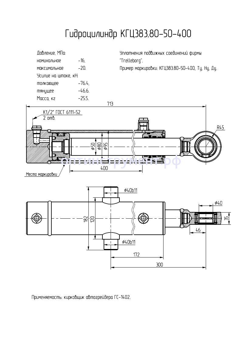 Гидроцилиндр кирковщика автогрейдера "ГС-1402" КГЦ 383.80-50-400 в продаже по цене 14 400 руб. в Интернет-магазине Проф-инструмент с доставкой в Уфе. Звоните по телефону +8 (800) 302-10-51.