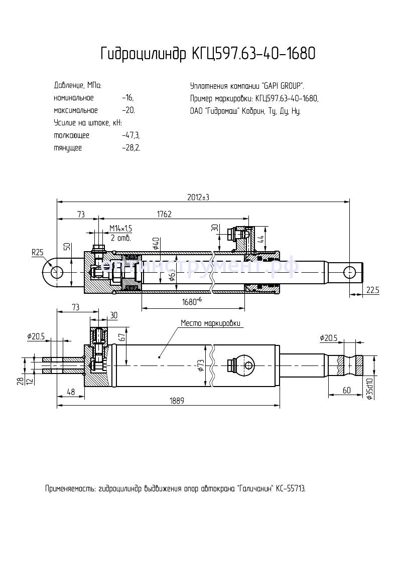 Гидроцилиндр выдвижения опор автокрана "Галичанин КС-55713" КГЦ 597.63-40-1680 в продаже по цене 18 810 руб. в Интернет-магазине Проф-инструмент с доставкой в Уфе. Звоните по телефону +8 (800) 302-10-51.