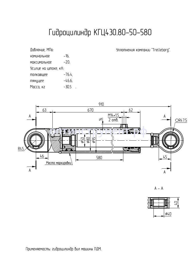 Гидроцилиндр вил машины "ПДМ" КГЦ 430.80-50-580 в продаже по цене 15 540 руб. в Интернет-магазине Проф-инструмент с доставкой в Уфе. Звоните по телефону +8 (800) 302-10-51.
