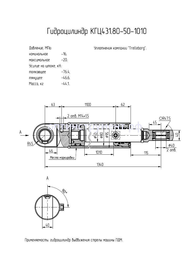 Гидроцилиндр выдвижения стрелы машины "ПДМ" КГЦ 431.80-50-1010 в продаже по цене 19 605 руб. в Интернет-магазине Проф-инструмент с доставкой в Уфе. Звоните по телефону +8 (800) 302-10-51.