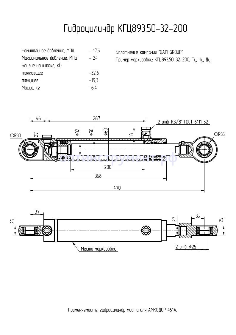 Гидроцилиндр моста для вилочного погрузчика "Амкодор 451А" КГЦ 893.50-32-200 в продаже по цене 8 715 руб. в Интернет-магазине Проф-инструмент с доставкой в Уфе. Звоните по телефону +8 (800) 302-10-51.