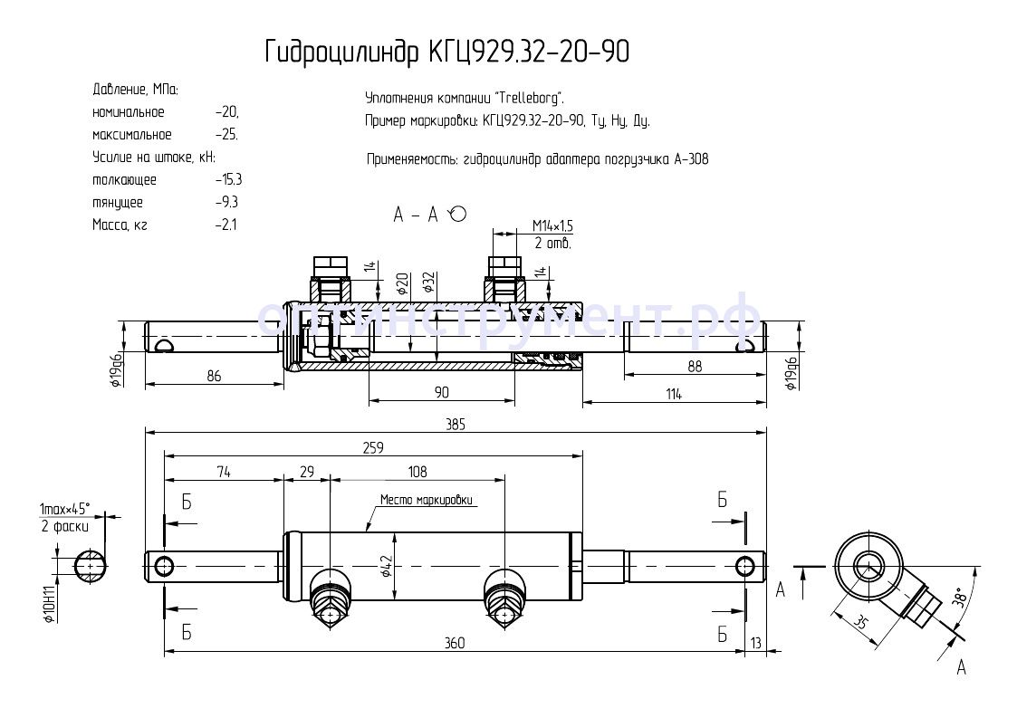 Гидроцилиндр адаптера погрузчика КГЦ 929.32-20-90 в продаже по цене 13 230 руб. в Интернет-магазине Проф-инструмент с доставкой в Уфе. Звоните по телефону +8 (800) 302-10-51.