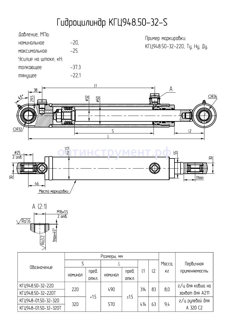 Гидроцилиндр погрузчика "Амкодор 320С2" КГЦ 948-01.50-32-320 в продаже по цене 8 388 руб. в Интернет-магазине Проф-инструмент с доставкой в Уфе. Звоните по телефону +8 (800) 302-10-51.