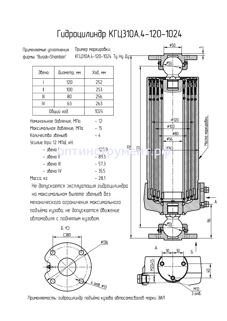 Гидроцилиндр подъёма кузова автосамосвалов марки "ЗИЛ" КГЦ 310А.4-120-1024 в продаже по цене 31 095 руб. в Интернет-магазине Проф-инструмент с доставкой в Уфе. Звоните по телефону +8 (800) 302-10-51.