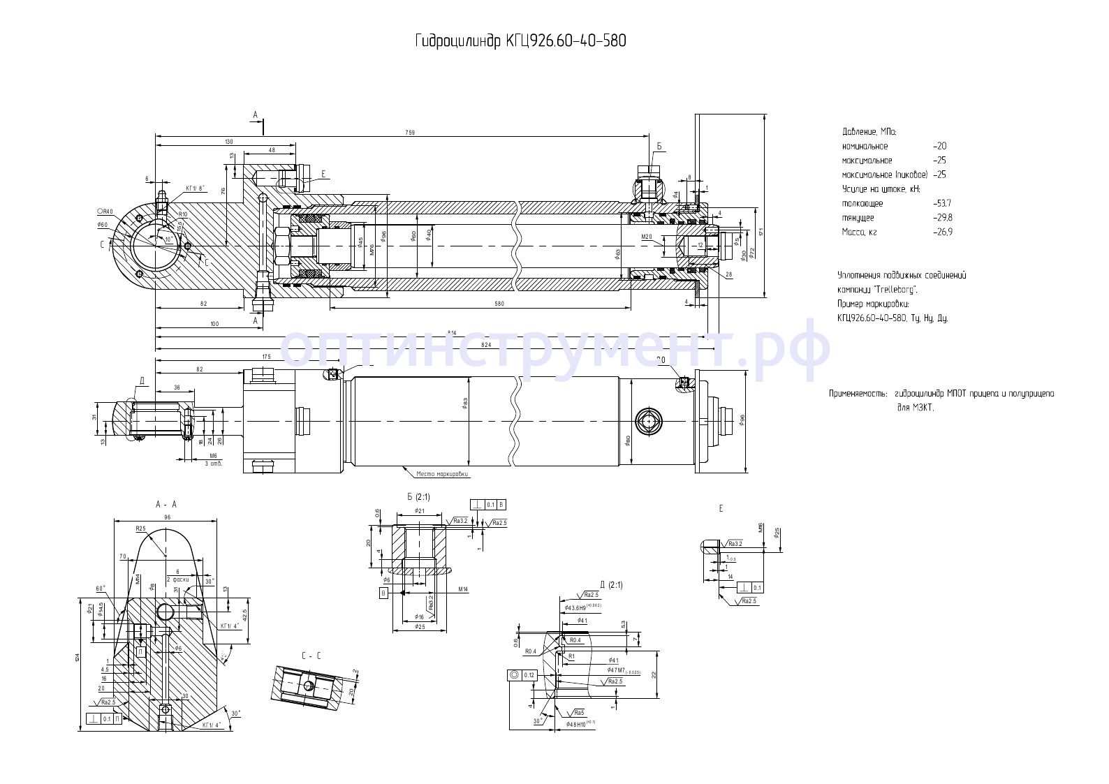 Гидроцилиндр МПОТ прицепа и полуприцепа для "МЗКТ" КГЦ 926.60-40-580 в продаже по цене 0 руб. в Интернет-магазине Проф-инструмент с доставкой в Уфе. Звоните по телефону +8 (800) 302-10-51.