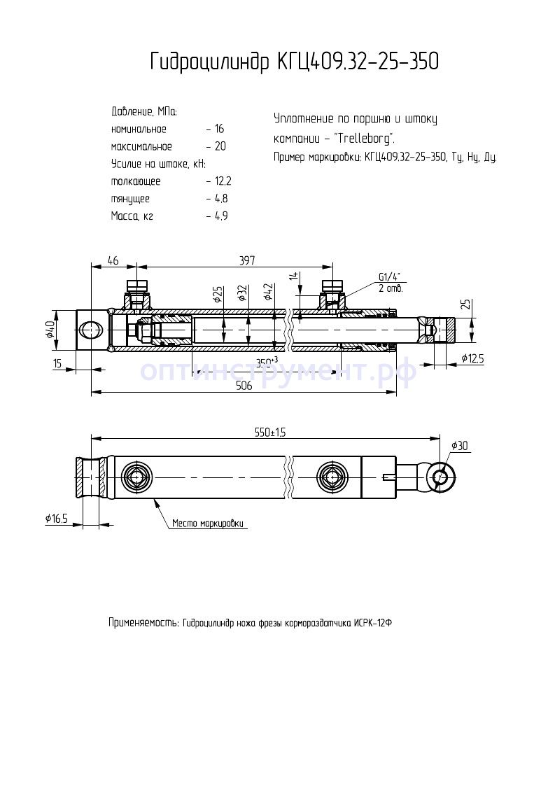 Гидроцилиндр ножа фрезы кормораздатчика "ИСРК-12Ф" КГЦ 409.32-25-350 в продаже по цене 0 руб. в Интернет-магазине Проф-инструмент с доставкой в Уфе. Звоните по телефону +8 (800) 302-10-51.
