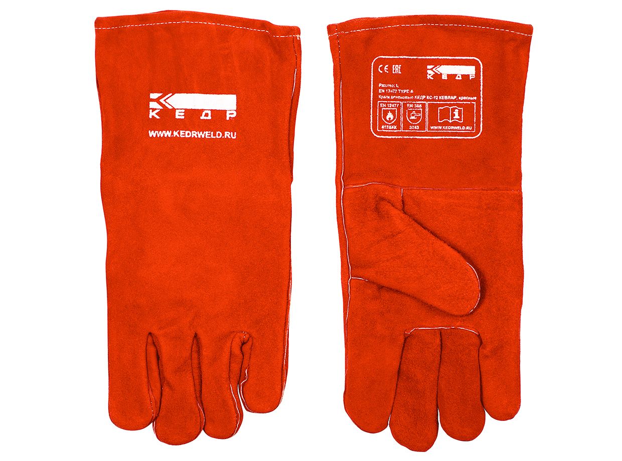 Краги спилковые КЕДР КС-12 КЕВЛАР, красные изготовлены из цельной коровьей шкурки толщиной 1,3 мм с подкладкой из мягкой ткани.Надежно защищают руку сварщика от брызги ожогов, а также при работе со шлифмашинкой и острыми предметами.Обеспечивают максимальный комфорт.Обладают усиленной стойкостью к механическим воздействиям.