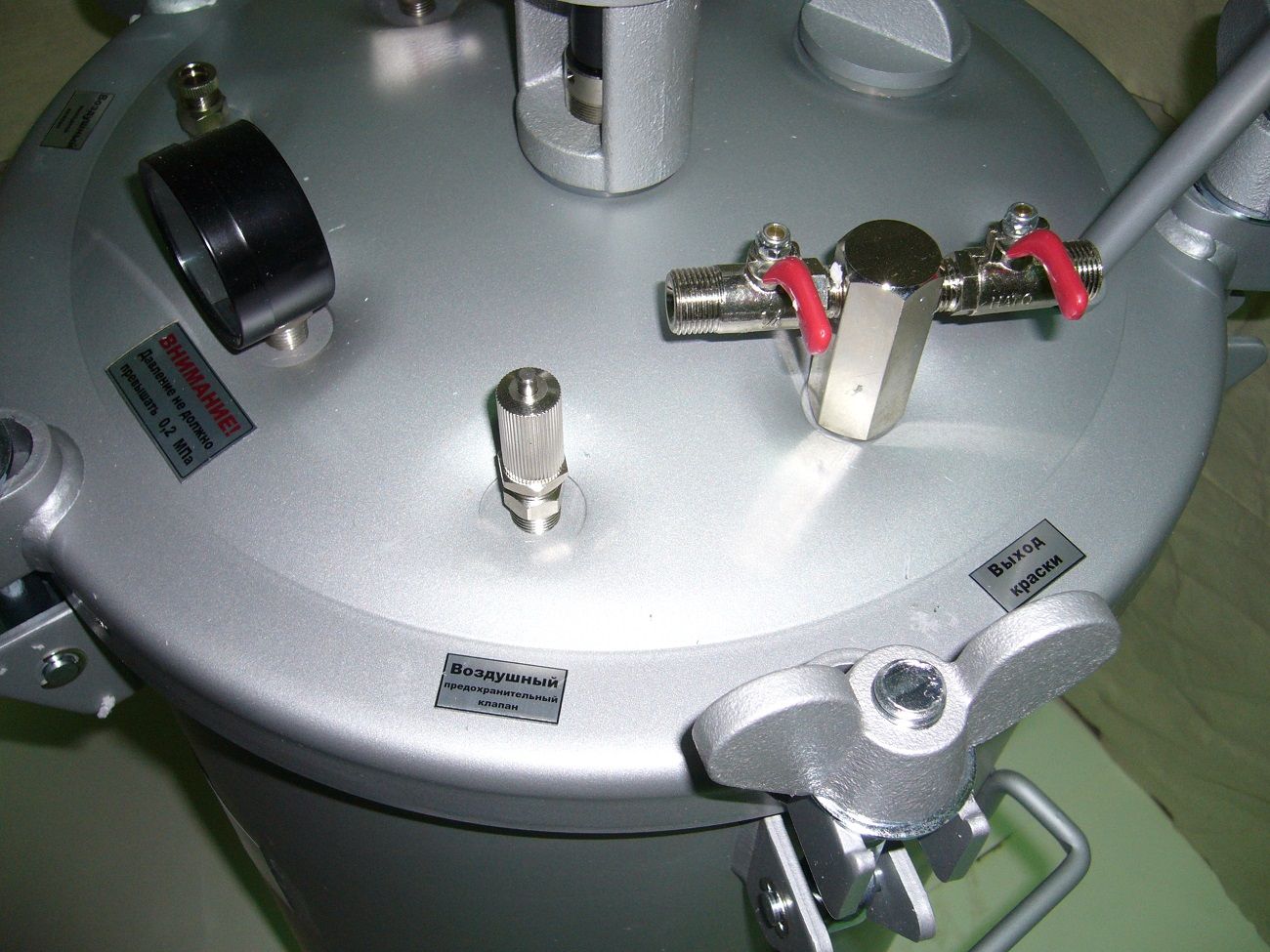 Дополнительно может комплектоваться краскораспылителем или комплектом для подключения второго окрасочного поста (работа от бака двумя распылителями).
