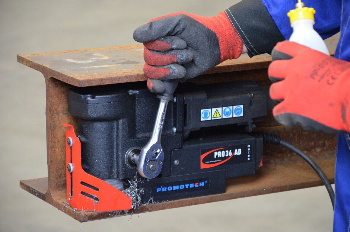 Характеризуется высокой надежностью, неприхотливостью в обслуживании и удобством в работе. Основной рабочий инструмент – 19 мм кольцевые фрезы под разъем Weldon. Диаметр сверления спиральным сверлом до 36 мм. Имеет съемную рукоятку подачи с трещоткой, которая может устанавливаться с обеих сторон.