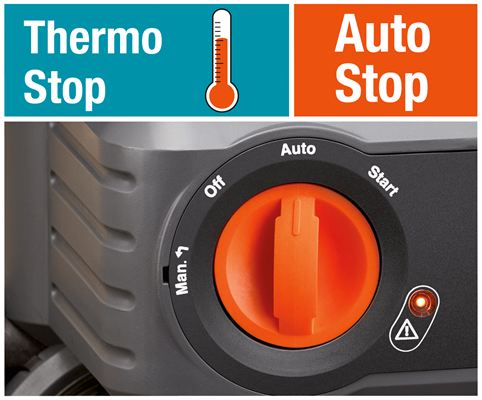 - Встроенная защита от сухого хода с предупреждающей лампочкой.