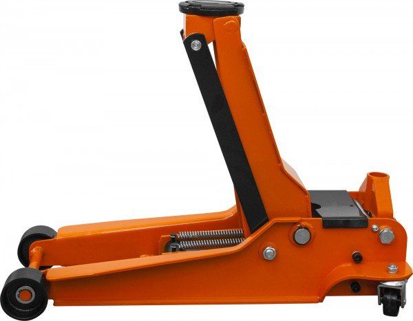 Двухпоршневой подкатной домкрат с уменьшенной высотой подхвата. Предназначен для легковых автомобилей и профессионального использования в условиях частных гаражей, автосервисов или шиномонтажных мастерских.