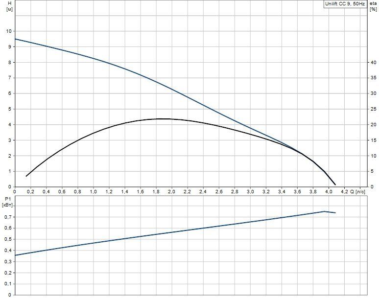 Одноступенчатый погружной дренажный насос Grundfos UNILIFT CC 9 A1 с вертикальным напорным патрубком. Служит для перекачивания чистой и загрязненной воды без волокнистых включений с твердыми частицами до 10 мм, отведения воды из затапливаемых помещений, стиральных машин, моечных агрегатов и душа. А так же откачивания воды из рек, прудов и различных емкостей.