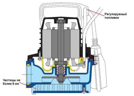 450Вт, 8000 л/час, напор - 7 м, макс. размер пропуск. частиц- 5 мм, пластик, глубина погружения - 7 м.