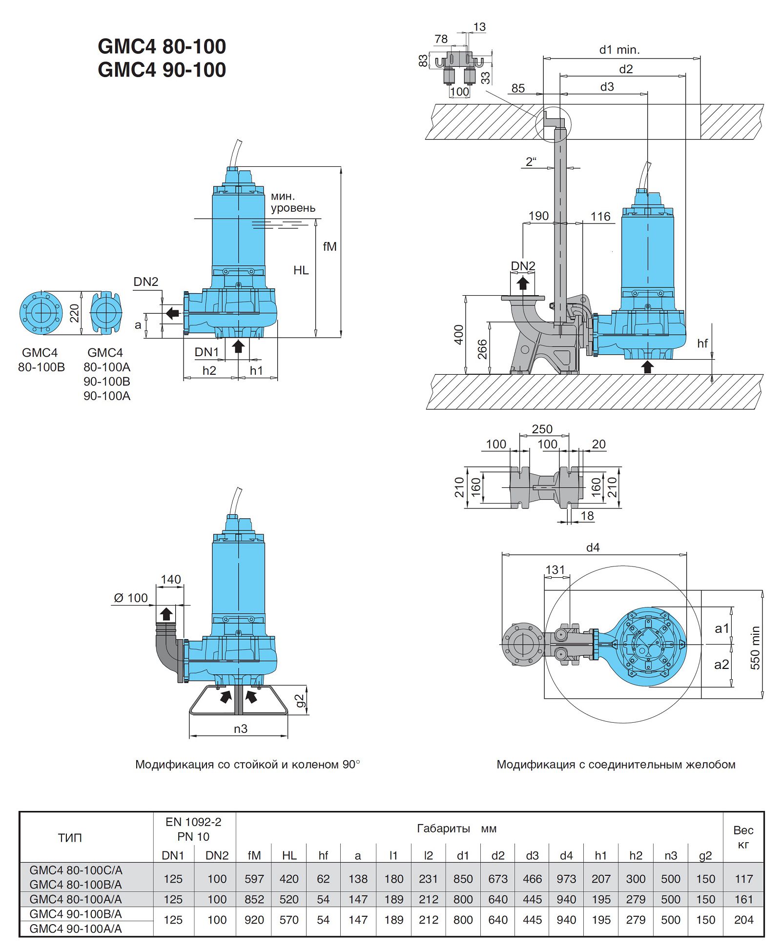 Насосы данной серии применяются для перекачивания сточных вод с температурой до 40С и частицами диаметром от 65 до 100мм.