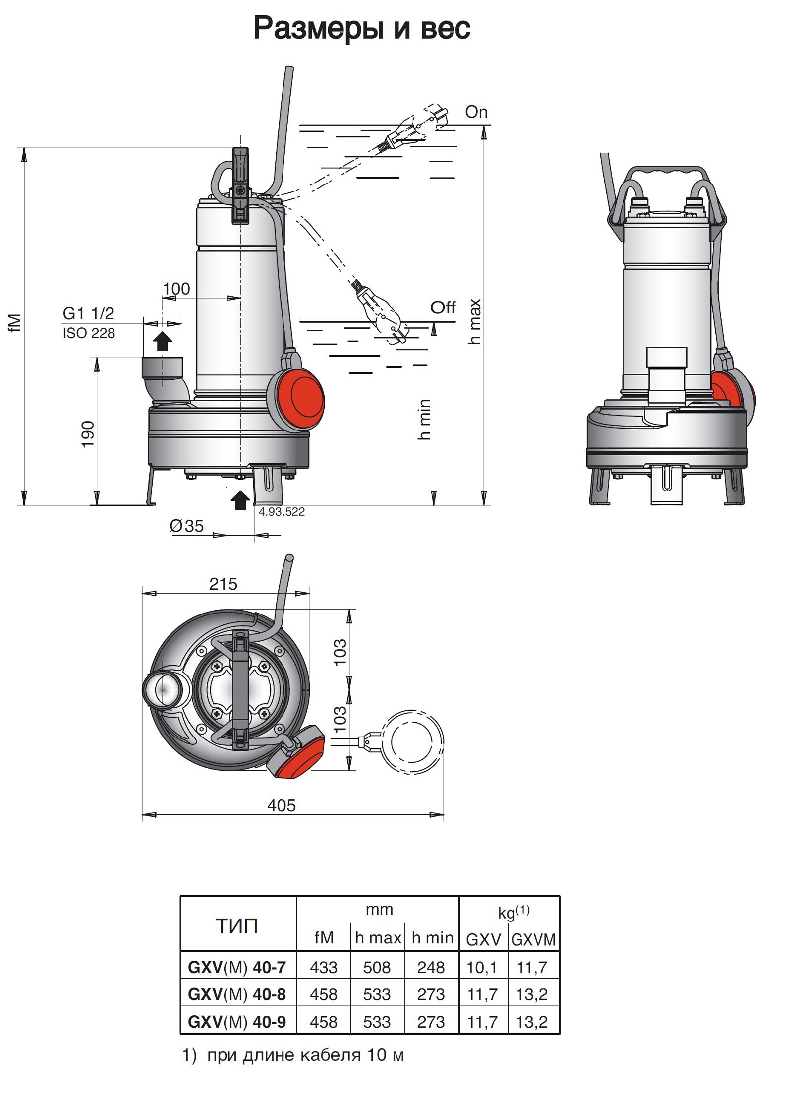 Дренажные насосные агрегаты типа GM10, GX40, GM50 с напряжением питания на 220 В укомплектованы автоматическим выключателем поплавкового типа, позволяющим насосу при изменении уровня жидкости включаться и отключаться автоматически.