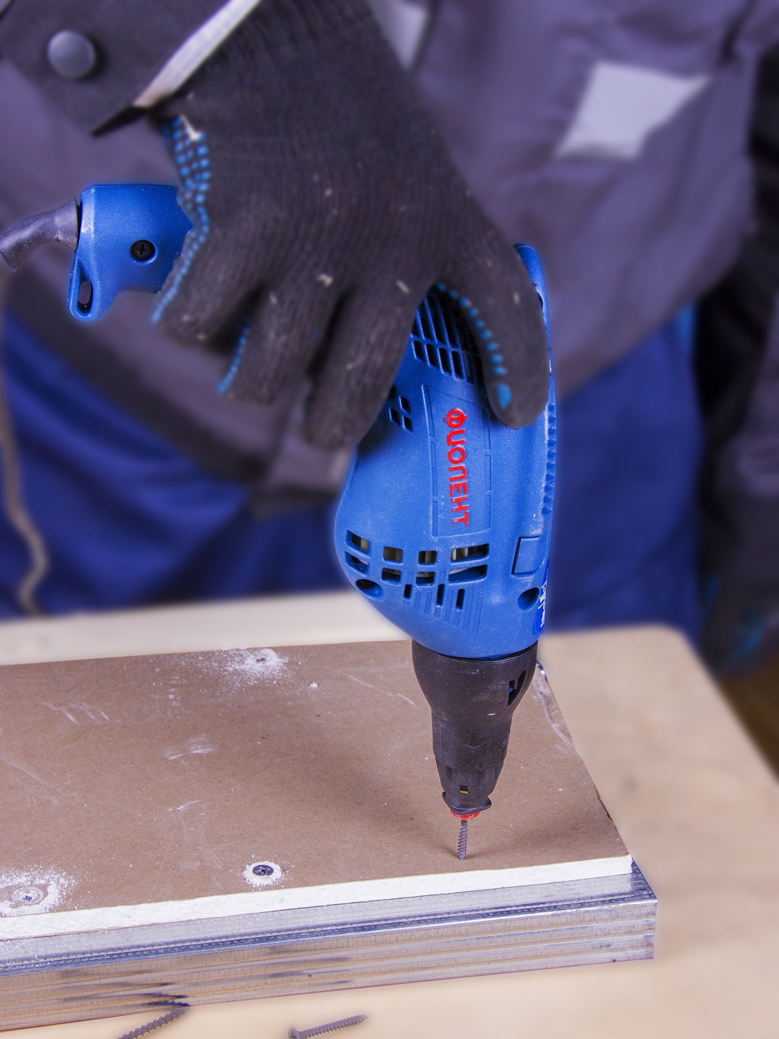 - Съемный, регулируемый ограничитель глубины завинчивания шурупов;