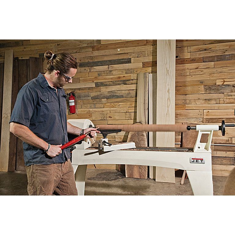 Jet JWL-1440VS – массивный и устойчивый токарный станок с большой зоной обработки, вариаторным приводом шпинделя и мощным асинхронным двигателем, рассчитанным на продолжительную работу без перерывов на охлаждение. Модель является развитием хорошо себя зарекомендовавшего станка JWL-1442, популярного как у профессионалов, так и у любителей работы с деревом. Особенность новинки – плавное, бесступенчатое изменение скорости, шпиндель с резьбой М33х3,5 и настольное исполнение (массивные чугунные ноги для напольной установки предлагаются за отдельную плату). В качестве опции также поставляется и удлинение станины, причем монтировать его можно на двух уровнях, что позволяет работать с заготовками увеличенного диаметра (подразумевается их крепление без использования задней бабки). Конструкция подручника также адаптирована для такой работы.
