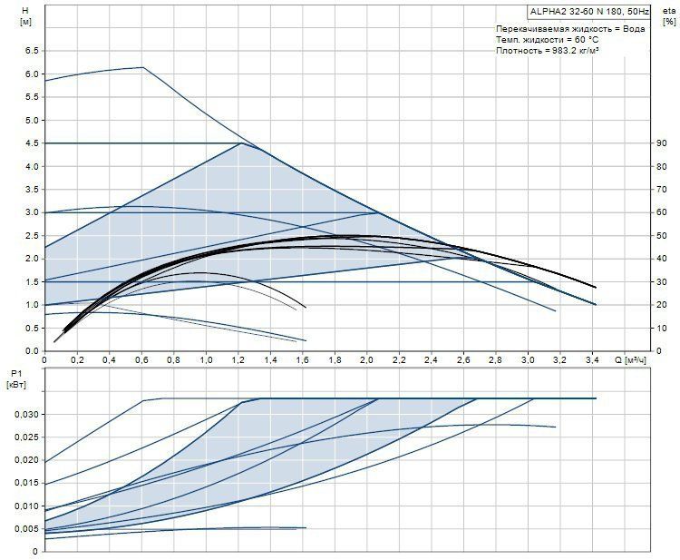 Циркуляционные насосы Grundfos ALPHA2 32-60 N используются для циркуляции воды или гликольсодержащих жидкостей в регулируемых системах отопления и в системах отопления с переменным расходом. Функция AUTOadapt ALPHA2 регулирует перепад давления в соответствии с текущими потребностями системы, нет необходимости регулировать насос самостоятельно, он все сделает за вас. Также есть 3 фиксированные скорости, 3 режима постоянного давления, 3 режима пропорционально давления.