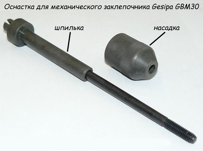 * заклепочник продается без оснастки (шпилька и насадка) и комплектуется нужным размером оснастки. При этом стоимость заклепочника увеличивается на стоимость добавленной оснастки